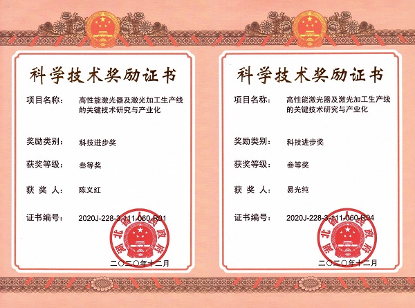 根据《湖北省科学技术奖励办法》,经省科学技术奖励评审委员会评审、省科学技术奖励委员会审定,我公司联合湖北第二师范学院、湖北工业大学等校企单位申报的“高性能激光器及激光加工生产线的管件技术研究与产业化”项目成果被省政府授予“湖北省科技进步奖三等奖”。其中公司董事长陈义红博士和副总经理易光纯均被授予“湖北省科技进步奖”获得者三等奖证书,以表彰他们对获奖项目成果做出的突出贡献。