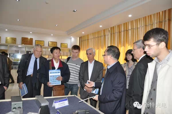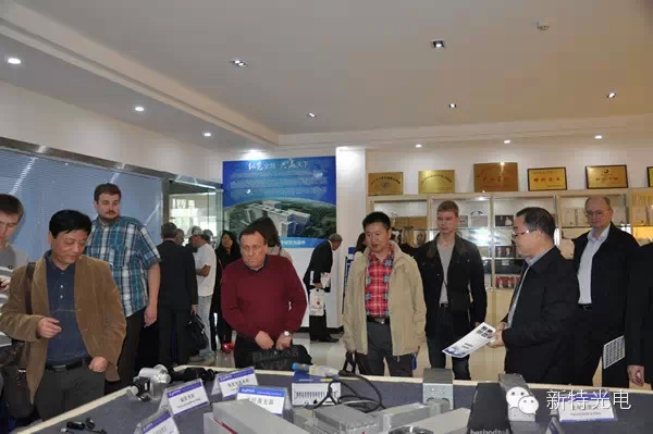 公司董事长陈义红博士及相关负责人热情接待了来宾。陈博士首先对俄罗斯激光代表团表示了热烈的欢迎,并带领参观了新特展示厅,在听取了陈博士对公司荣誉及 产品种类及特点的介绍后,俄罗斯代表团成员表示了极大的兴趣,并对我司激光设备的各类配件均有涉及感到吃惊,表示希望有进一步的合作。