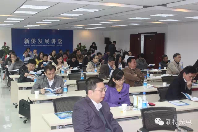 “新侨发展讲堂”于上于2014年11月11日上午9:00在优游工业园內为侨服务中心开讲,武汉市侨联主席秦峰致开讲辞,武汉市科技局副局长赵峰、 武汉市科技局调研员李和宇为我们解读“武汉创新发展的现状、前景及对创新型企业发展的扶持政策”,深度介绍武汉市有关科技项目的申报、评审,为申请武汉市 的科技项目答疑解惑,帮助新侨专业人士获得政府科技基金支持!