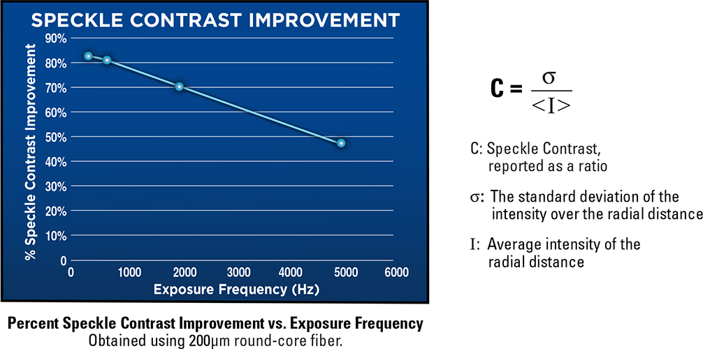 在激光扫描显微镜、流式细胞术和DNA测序等要求激光光束输出均匀、强度均匀的应用中,减少散斑是非常重要的。利用散斑清除器对模态噪声进行平均可大大降低散斑从而使系统的性能达到最优。散斑抑制还能给用户带来许多其它好处,如集成简便快捷,降低噪比和更高的吞吐量。