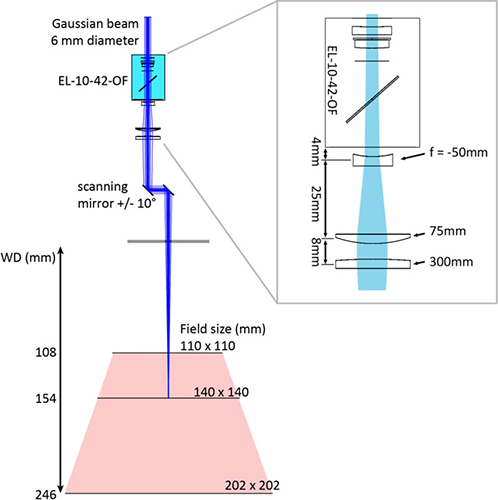 STOT-EL-10-42-OF电动变焦聚焦镜适合与纳秒或皮秒脉冲激光器搭配使用。具有如下特点: