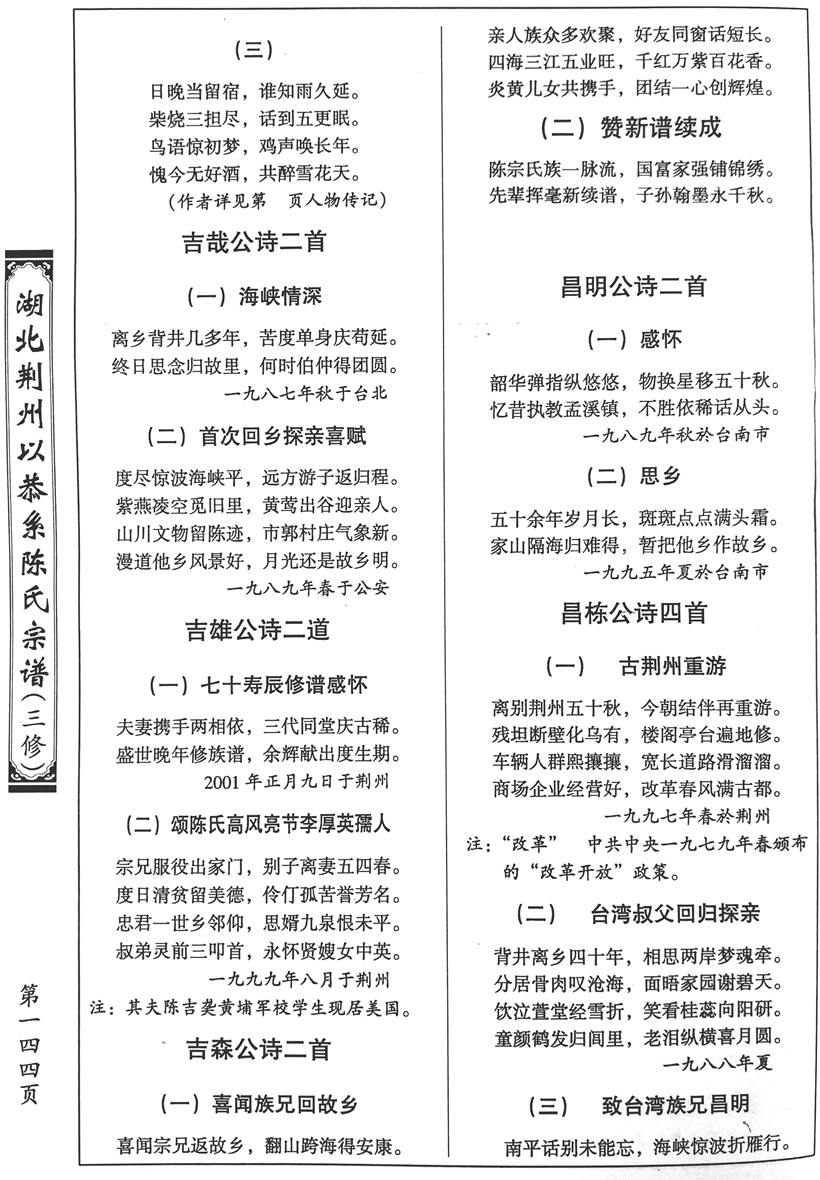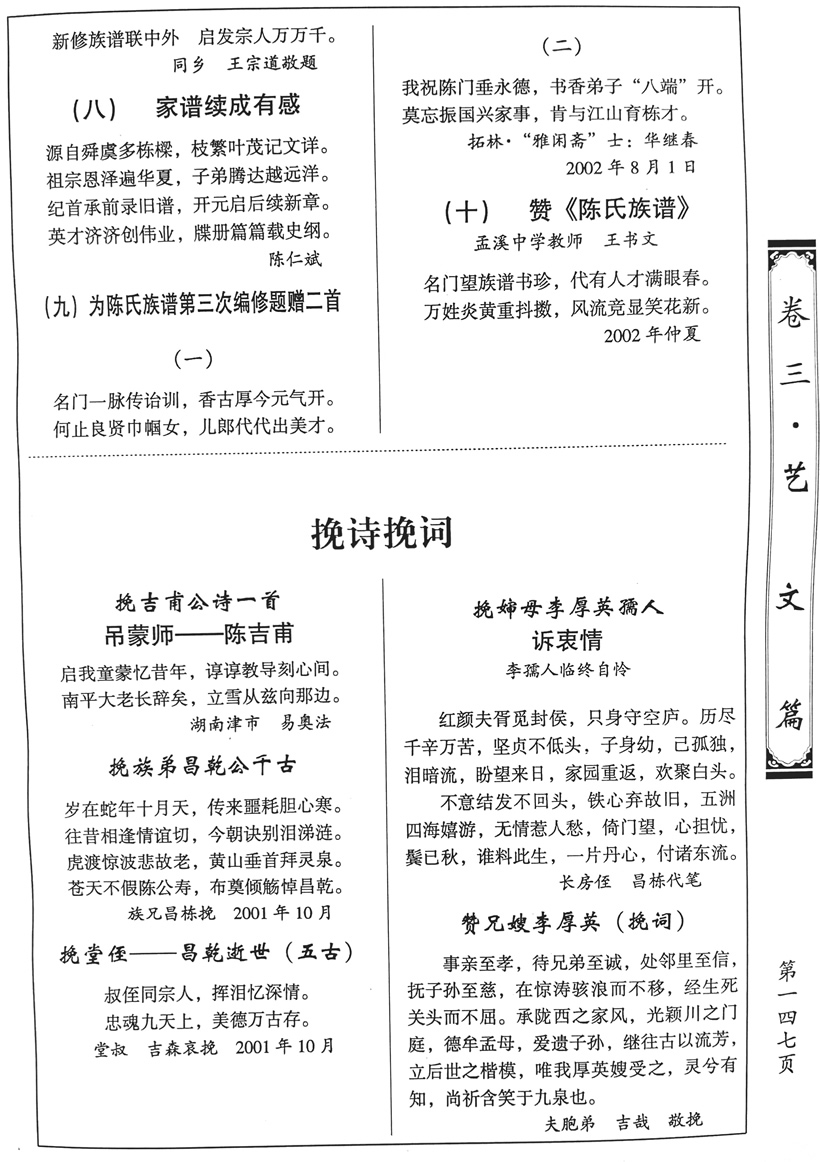 【三修谱】诗词选(143-147页) 作者:超级管理员 来源:本站 发布日期:2018-02-02 关注:628 上一篇:【三修谱】艺文、康熙皇帝圣诏、寿文、赞文(126-143页) 下一篇:【三修谱】楹联选(148-149页)