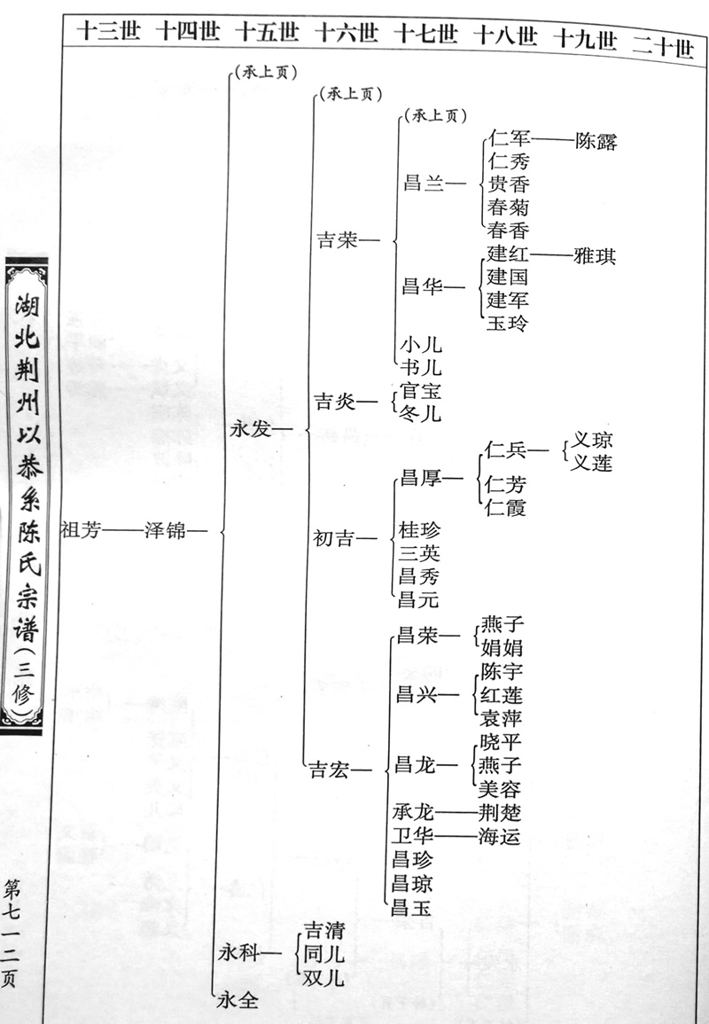 【三修谱】大洁公世系图(701-712页) 作者:超级管理员 来源:本站 发布日期:2018-02-03 关注:624 上一篇:【三修谱】大洪公世系图(550-566页) 下一篇:【三修谱】大润公世系图(151-167页)