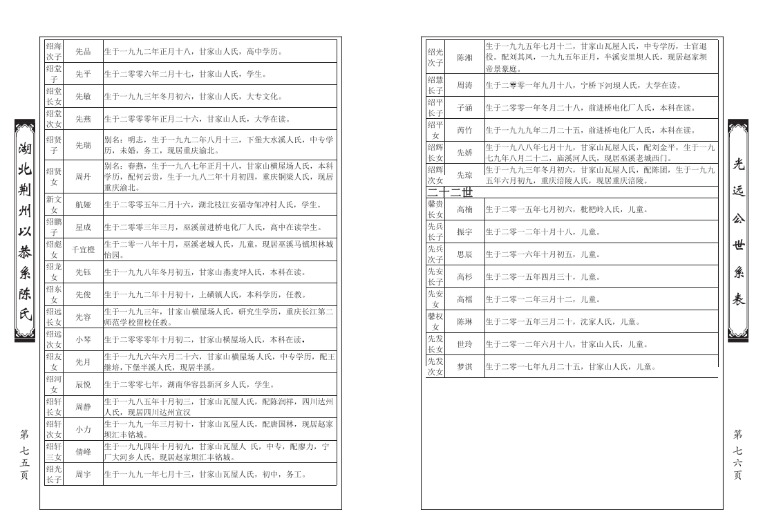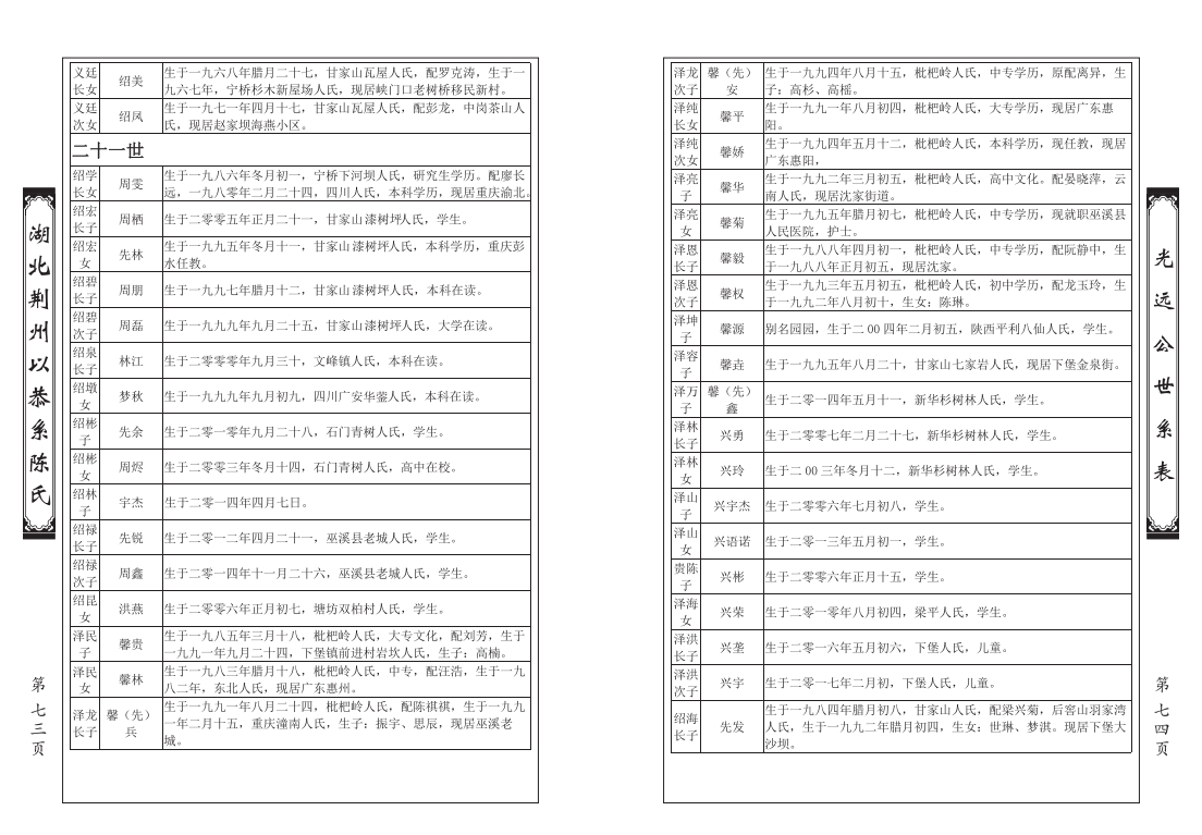 6. 以恭系巫溪支谱-泽柱公世系图、世系表