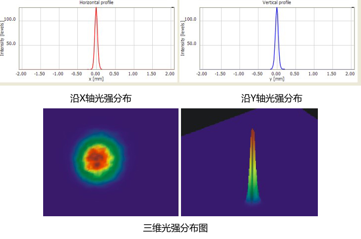 激光束光强分布,从光强分布图可以看出,激光光束质量很好,沿XY方向分布对称。