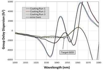 以上示例显示了涂料公司期望在1030nm的波长范围内制造具有固定量的GDD的涂层。STKM-Chromatic在GDD的优化设计中具有非常宝贵的作用。