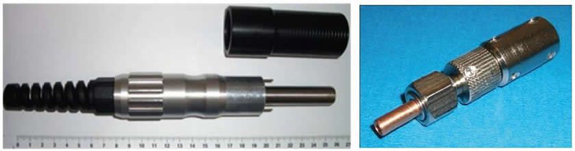 高功率光纤传输连接器采用空间隙设计,光纤可以延伸到1.1mm到1.5mm的自由空间,从而使光纤传输热源更安全的消散,减少光纤材料被烧毁的可能性。此外,我们有采用不同的方法来来对光纤端面进行抛光或熔融处理使光纤承受功率更大。 高功率连接器可兼容SAM905和FC连接头。