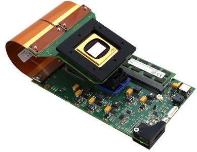 ALP-4控制器套件是一个通用平台,可实现DLP微镜的高级控制系统。为工业、医学、研究和开发而设计的一套广泛的库功能为应用程序开发提供了便利。我们推出了第一个ALP控制器套件TM,从2001年TI在市场上推出的第一个DLP Discovery芯片组开始。多年来,基于FPGA的DLP芯片组一直得到支持,保持了应用程序编程接口的完全兼容性。使用ALP-4的客户可以快速启动产品设计,而无需耗时开发软件、固件和高频FPGA逻辑代码。控制和数据流的方案如下面的框图(下图左)所示。操作原理与标准多媒体投影完全不同。图案序列在PC中生成,并通过压缩的USB传输上传到板载存储器。高度复杂的FPGA逻辑用于处理数据并将数据流传输到微镜阵列。ALP-4控制器套件包含在所有V模块中,如图(下图右)所示。它也可作为德州仪器DLP Discovery4100评估模块(EVM)的附件提供。